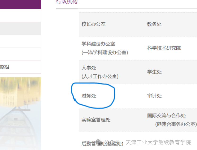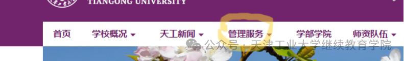 天津工业大学继续教育学费缴纳通知(2026年)1. 访问天津工业大学主页(https://www.tiangong.edu.cn/),在第一行导航栏中找到“管理服务”,点击“行政机构”。